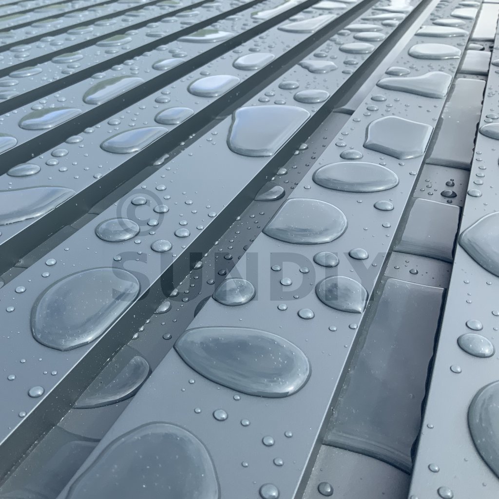 Le principal avantage de l’aluminium, c’est l’étanchéité. Ces lames sont spécialement élaborées pour collecter efficacement l’eau dans une rigole intégrée, assurant ainsi une bonne protection contre les infiltrations d’eau.