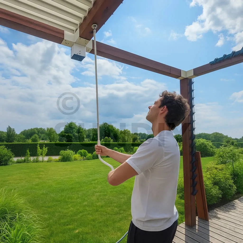Le Blade Runner est le mécanisme de manœuvre ultime pour actionner les lames orientables SUNDIY 20 mm et 27 mm, en aluminium ou bois, en configuration horizontal uniquement (pergolas bioclimatiques).
