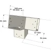 Connecteur d’angle intérieur à quatre directions, conçu pour l’assemblage de deux poutres en section 90x90 mm formant un angle de 20° avec un poteau vertical de même section. Il assure une liaison structurelle rigide et orthogonale à mi-hauteur, garantissant la stabilité de l’ensemble.