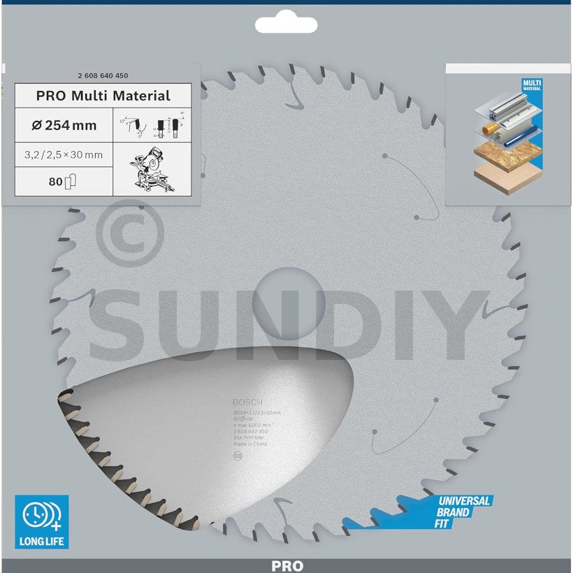 Lame de scie circulaire PRO 254 x 30 x 3.2 mm - 80 dents - Multi matériaux - Réf. 2608640450