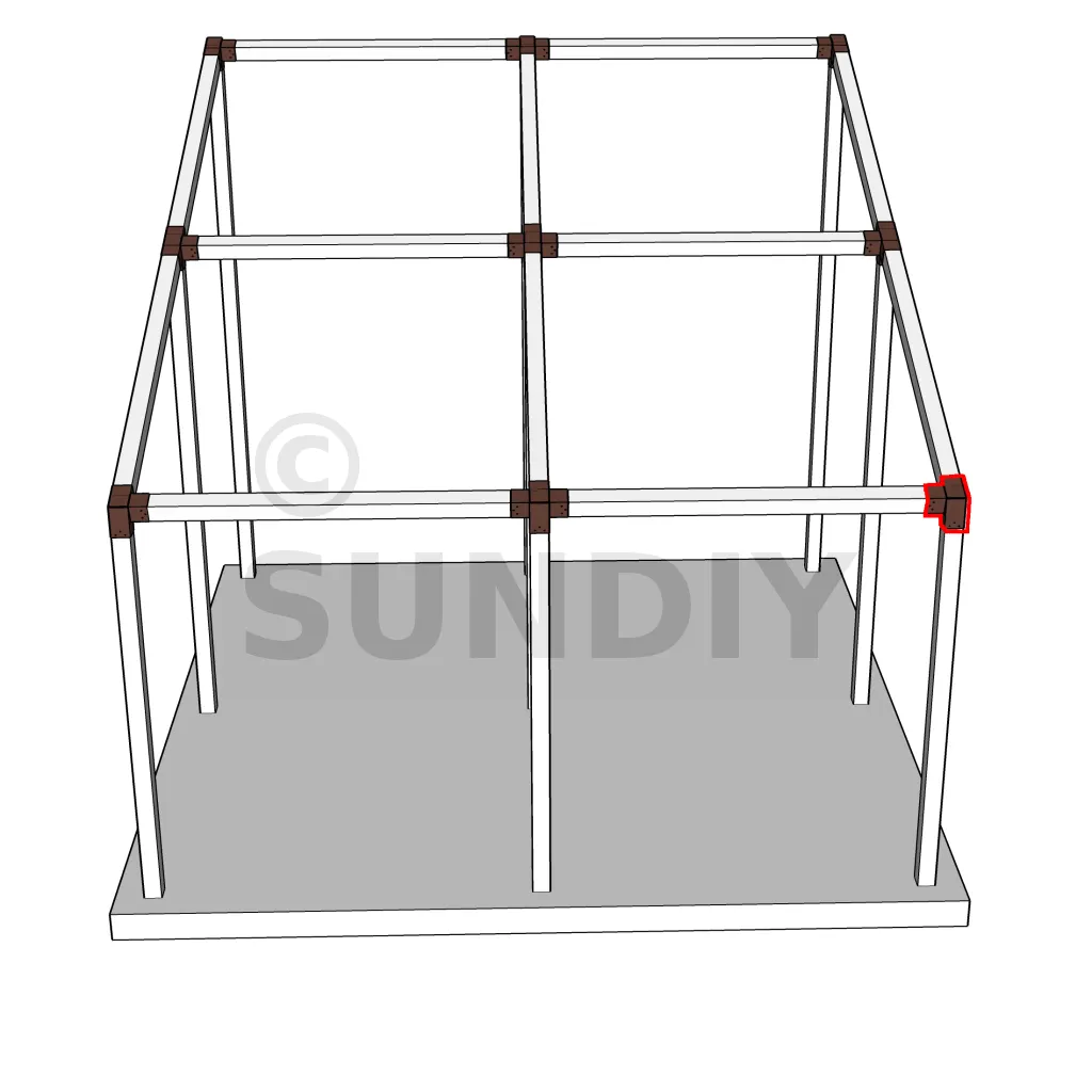 Il est utilisé dans un angle extérieur. Ce connecteur va permettre de raccorder une poutre 90x90mm à une poutre 90x90mm avec une pente de 20°, le tout étant supporté par un poteau vertical 90x90mm.