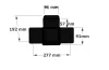 Connecteur d’angle intérieur à quatre directions conçu pour l’assemblage de poutres en section 90x90 mm avec un chevron de même section incliné à 20°. Il assure la jonction structurelle entre les éléments horizontaux, le chevron incliné et un poteau porteur vertical en 90x90 mm.