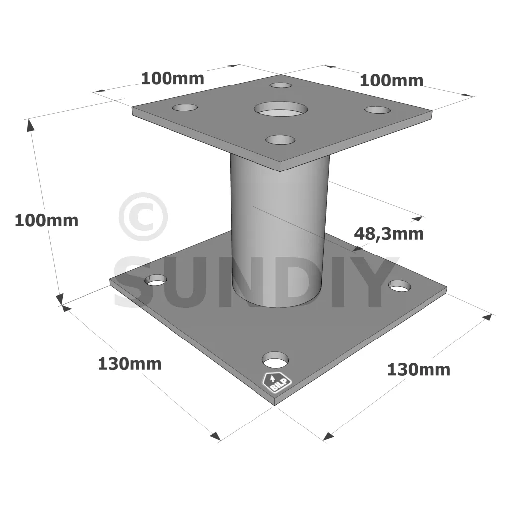Pied de poteau fixe, corps rond, hauteur : 100 mm - Réf. PPA100