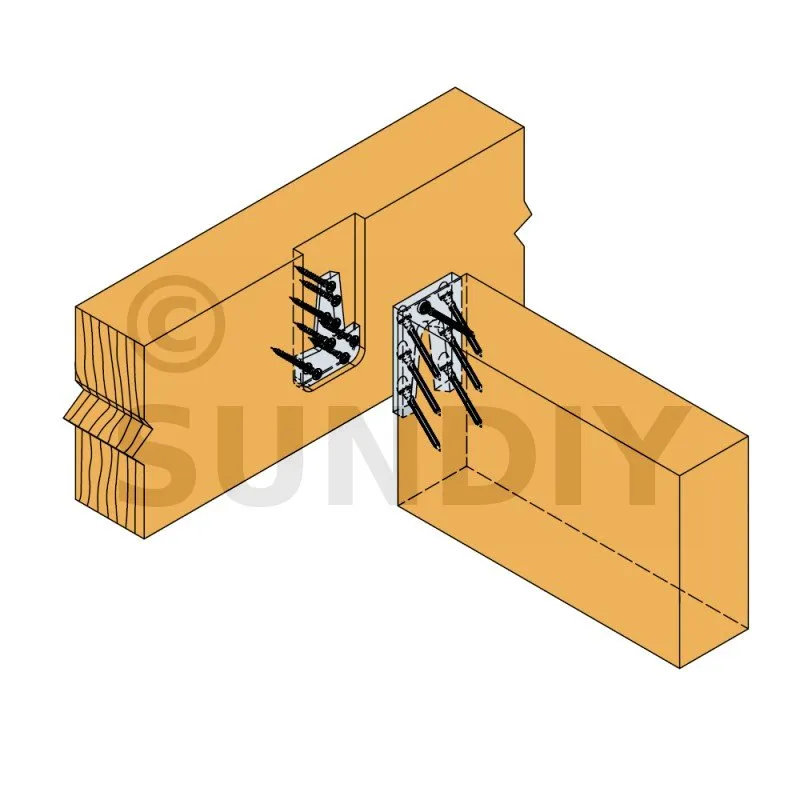 - Fixation bois/bois - type poteau/poutrePorteur : 6 x CNA4,0X50 ; Porté : 4 x vis SPAX-S5,0x80
