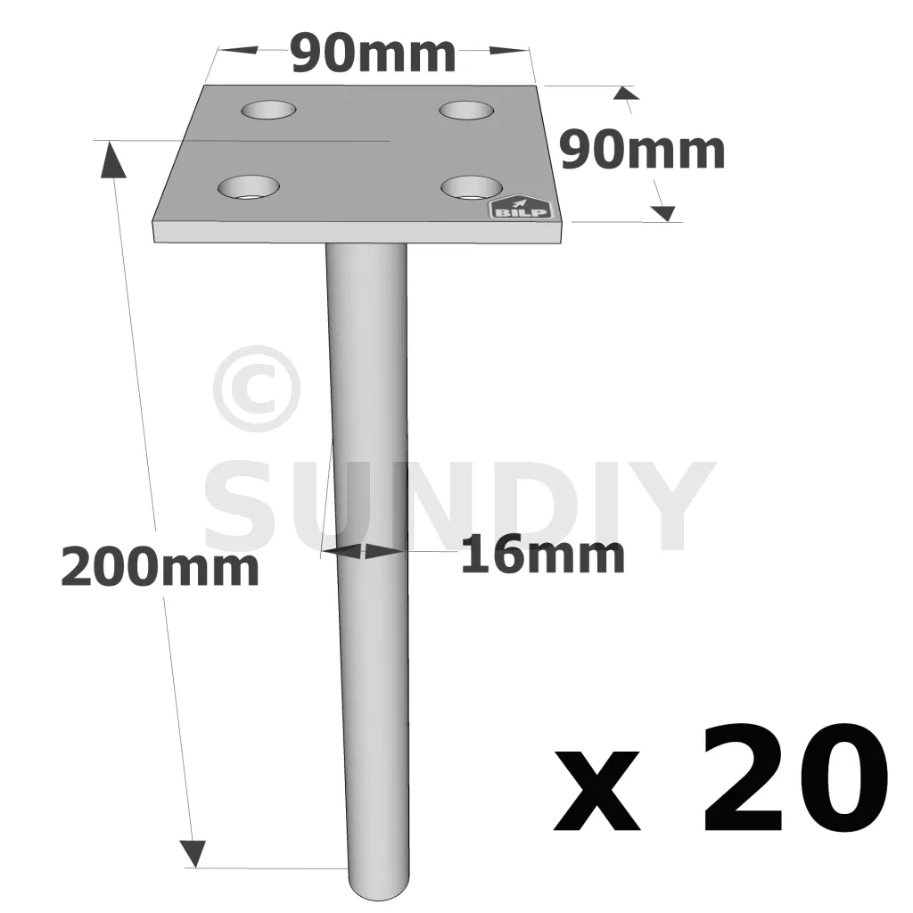 Pieds de poteau à sceller simple platine - Réf. PPSP90_20