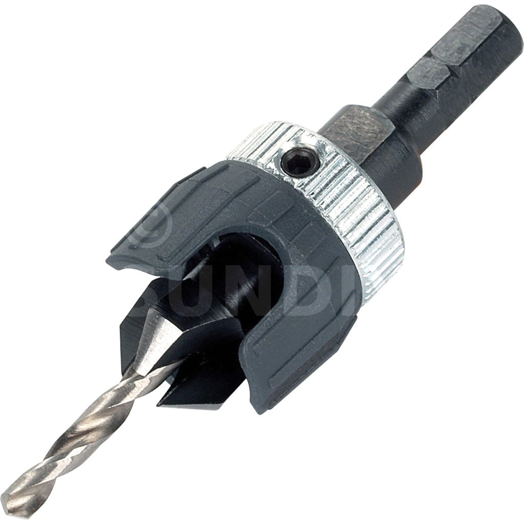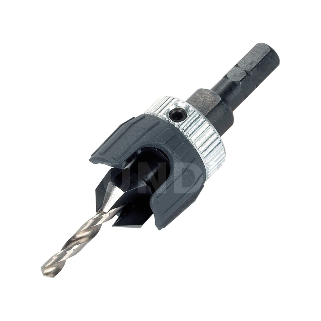 - Queue hexagonale pour le changement rapide des outils dans les porte-embouts, pré-perce et fraise en une seule opération, parfait pour les perçages en série grâce à la butée de profondeur, toujours la même profondeur de fraisage