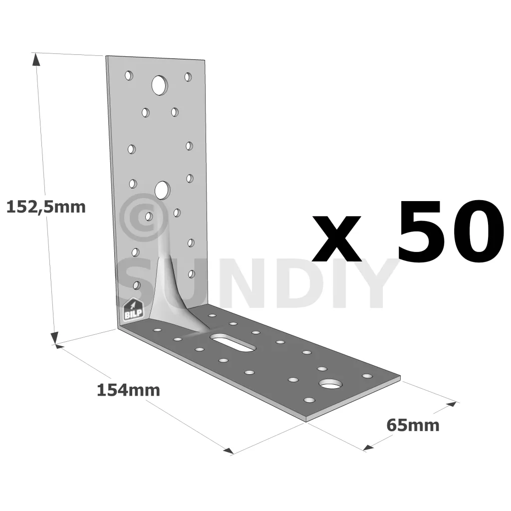 Équerres renforcées CLASSIQUES asymétriques pour le BOIS et le BETON - Réf. E9/2.5_50