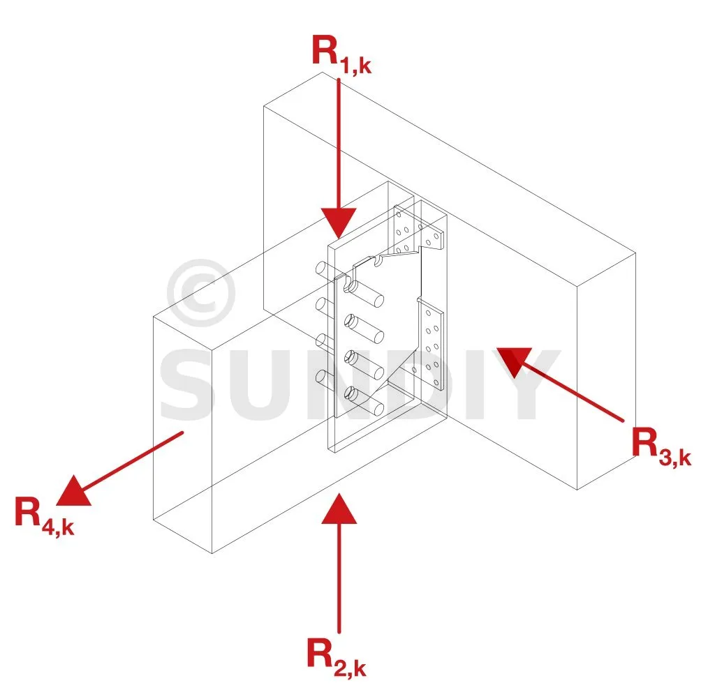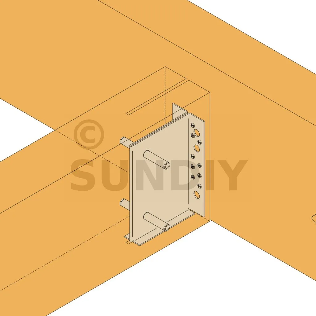 L‘étrier à âme intérieure permet un assemblage discret sur support bois. Le talon intérieur positionne l’étrier par rapport au bois facilitant le montage des broches.