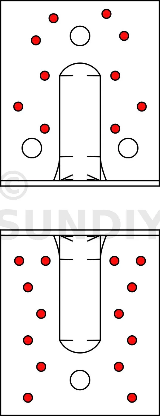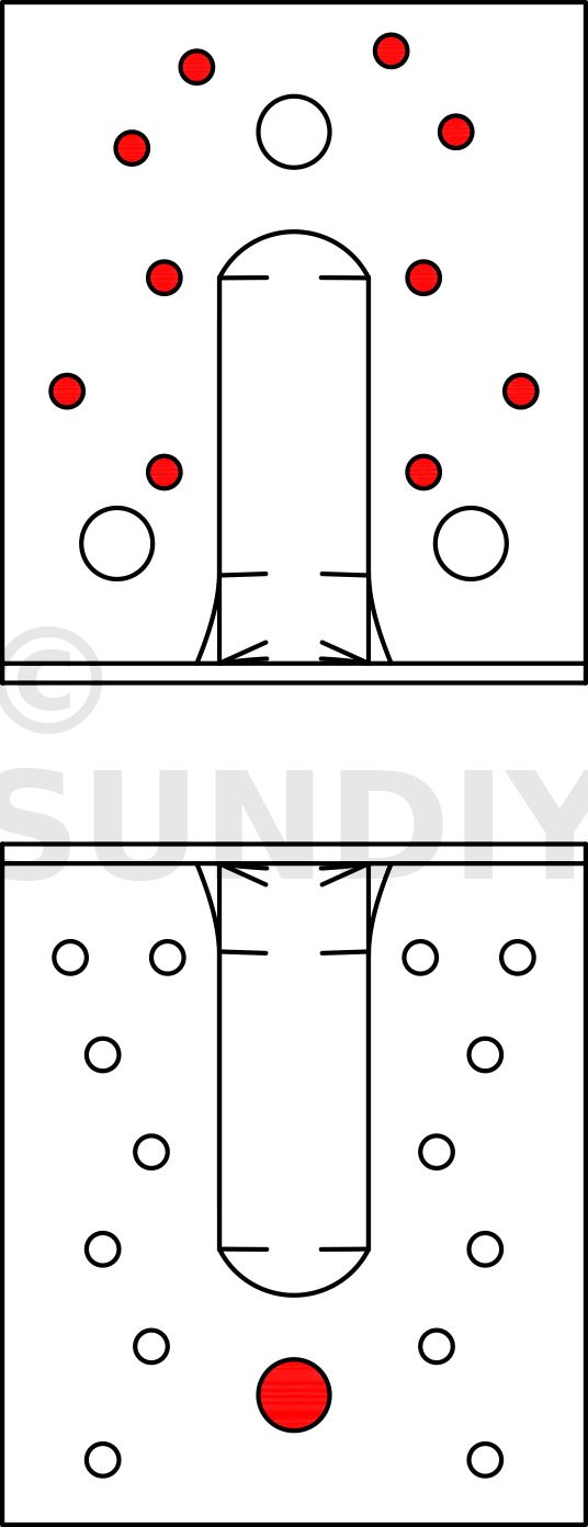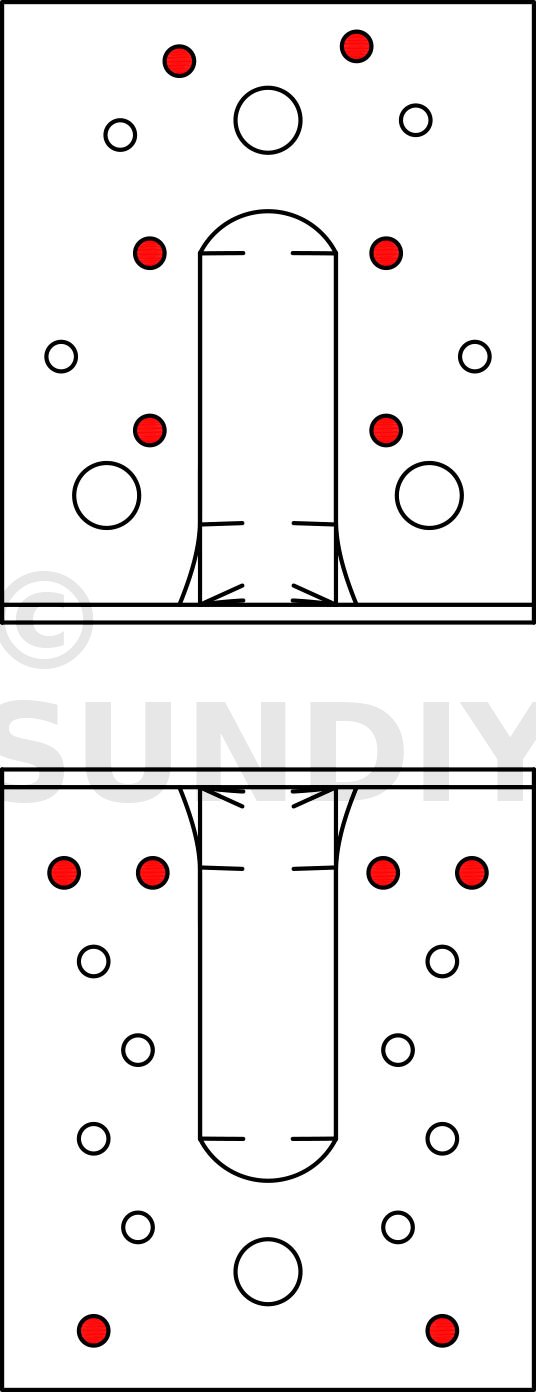 - Fixation BOIS/BOIS - clouage partielAile A : 6 ; Aile B : 6 ; type : Pointes annelées CNA Ø4.0x35 ou Ø4.0x50 mm, Vis CSA Ø5.0x35 ou CSA Ø5.0x40
