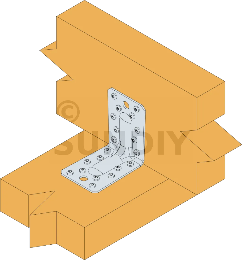 - Fixation bois/bois - type poteau/poutre2 équerres ; Aile A : 10 ; Aile B : 8 ; type : Pointes annelées CNA Ø4.0x35 ou Ø4.0x50 mm