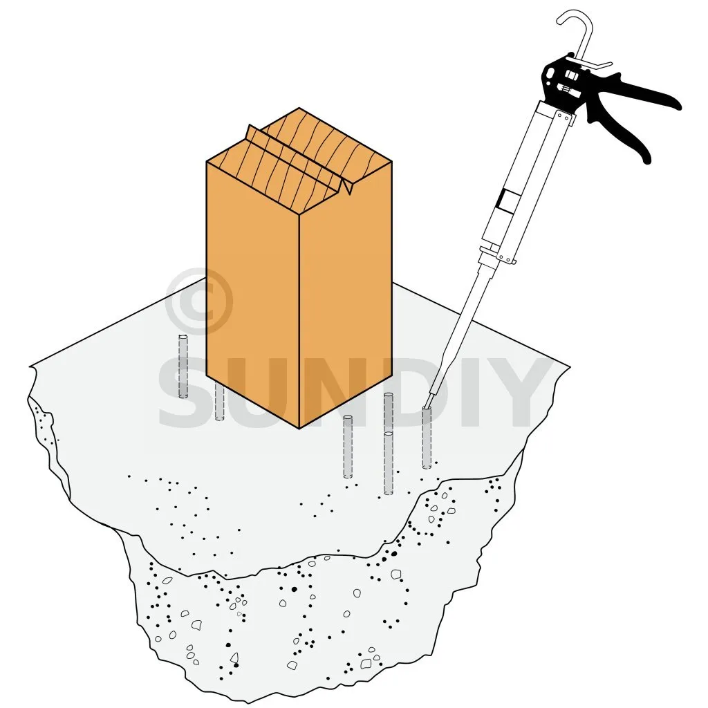 Ancrage chimique : résine AT-HP ou POLY-GP + Tige filetée LMAS M10-120/25 + tamis SH16x130.