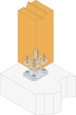 2. Fixer cette platine au poteau à l’aide de tirefonds LAG ou SSH Ø8x40 (pré-perçage nécessaire)