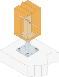 Les pieds de poteau en âme intérieure type PPSR permettent la réalisation d‘assemblages discrets et fiables. Leur conception en âme assure une bonne reprise des charges au soulèvement.