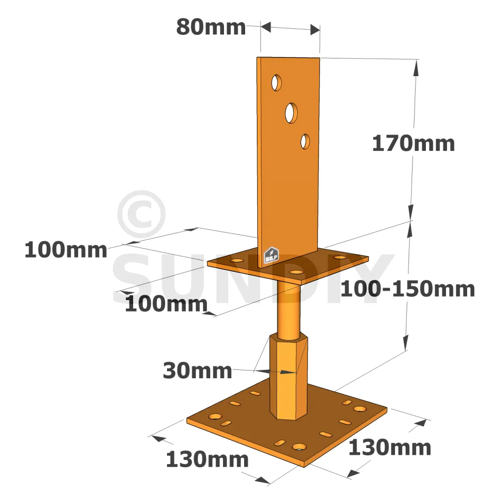 1. Fixer le pied de poteau au poteau,
