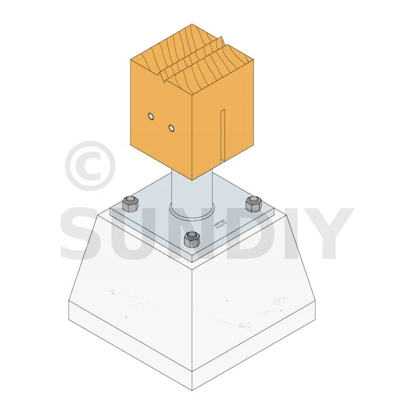 - Connexion bois sur support rigideSur poteau : 2Ø12 (broches STD) ; sur béton : 4Ø16 (goujons WA ; tige filetée)
