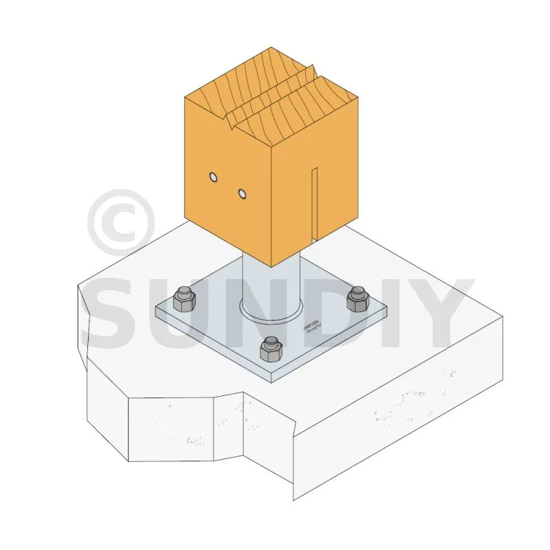 Le pied de poteau PISBMAXIG-K permet une reprise de charge en compression jusqu’à 9 tonnes en valeur design ainsi que des efforts de soulèvement grâce à son âme verticale. Il doit être boulonné sur un support rigide de type béton. Il est proposé en kit avec quatre goujons WA M16-151/30.