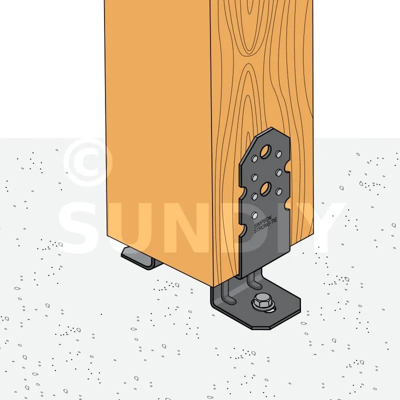 - Offre une distance réduite entre le support béton et le poteau bois (50 mm),
