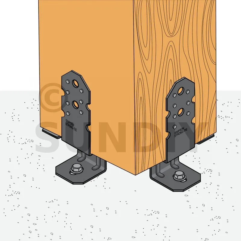 * Référez-vous à la gamme d’ancrage Simpson Strong-Tie pour sélectionner l’ancrage adapté. Les solutions standards sont BOAXII, SET-XP, WA, AT-HP, à choisir en fonction du type de béton, de l’entraxe et des distances aux bords.