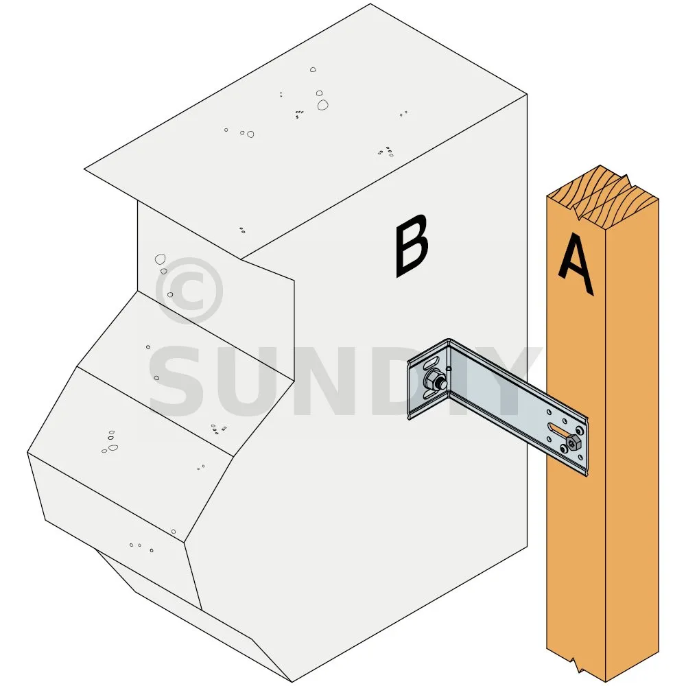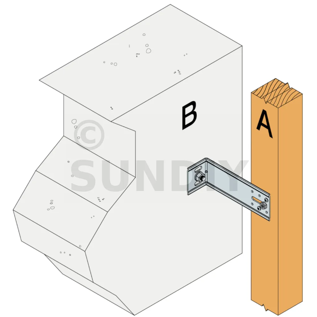 1. Fixation des équerres : la fixation sur le porteur béton s’effectue avec un ancrage de ∅8 placé dans le trou oblong le plus haut.