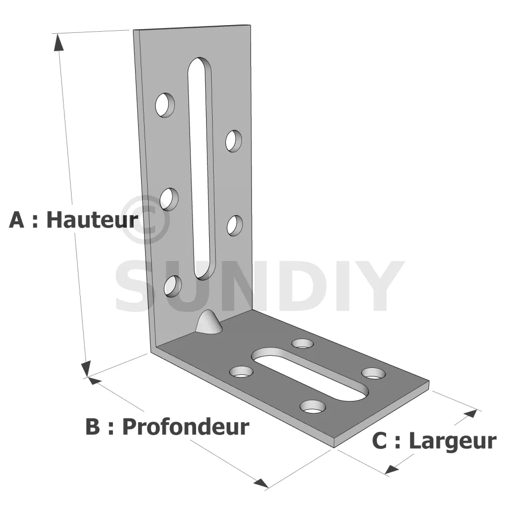 - Trous oblongs facilitant l’ajustement des assemblages,