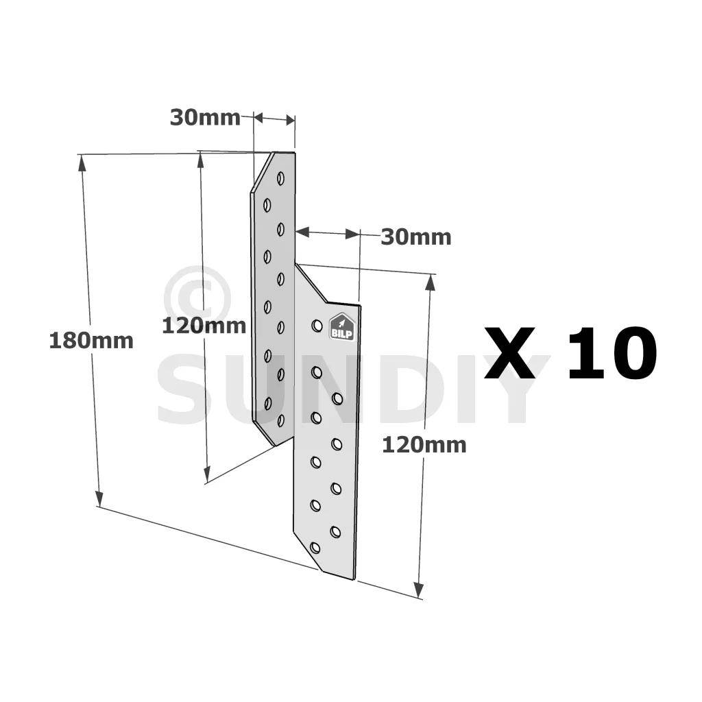 Patte de solivage DROITE - 30x180x1.5mm - Réf. PSD180/30/1.5_10