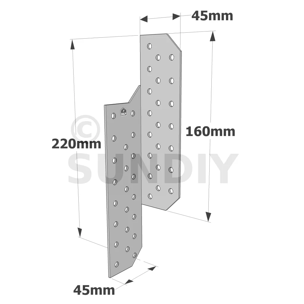 Patte de solivage GAUCHE - 45x220x2mm - Réf. PSG220/45/2_10