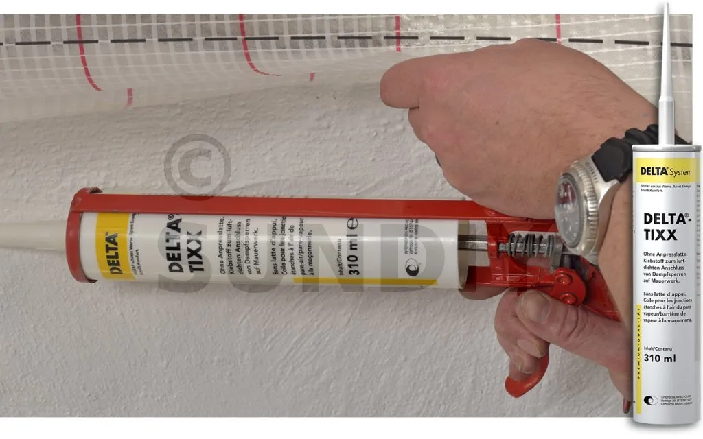 COLLE EN CARTOUCHE ÉLASTIQUE DELTA® : un collage durablement étanche à l’air des pare-vapeur pour une application intérieure parfaite !