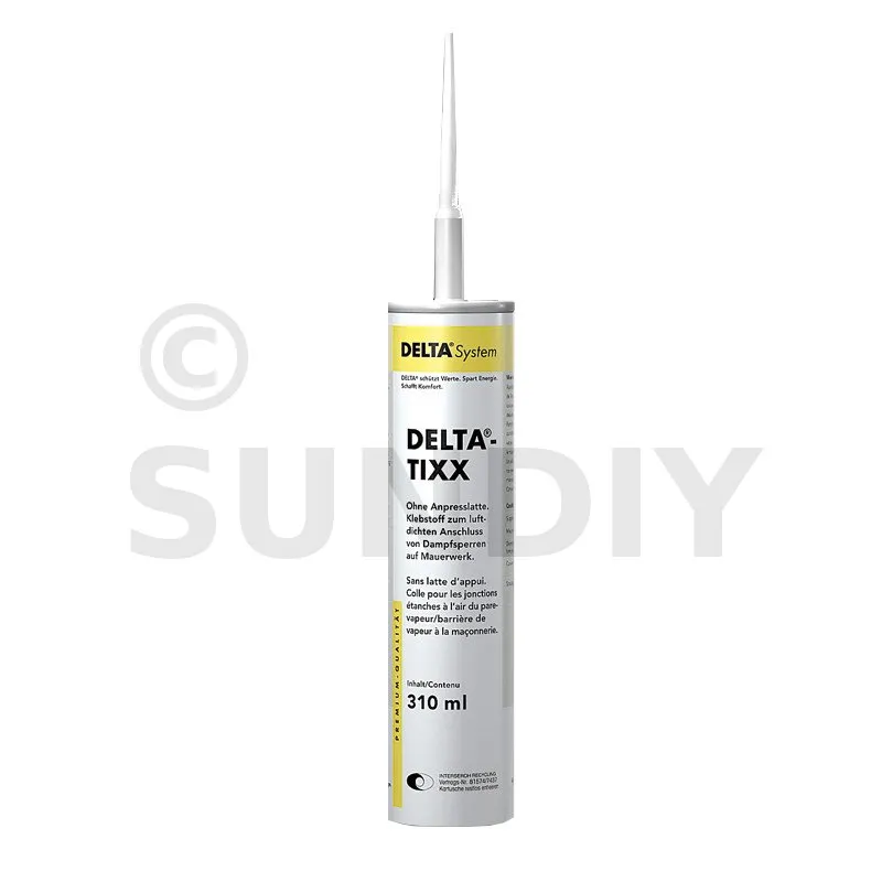 Offrez à vos chantiers une solution étanche et durable grâce au pare-vapeur DELTA® et à notre mastic d’étanchéité durablement élastique, exempt de solvants et à un très haut niveau d’adhésion. Notre produit est spécialement conçu pour réaliser des raccords entre le pare-vapeur DELTA® et les supports en enduits, béton, maçonnerie, métal, bois et autres. Sa Mise en œuvre est facile et rapide et ne nécessite pas d’autre fixation mécanique. Assurez-vous juste que le support est propre, sec et exempt de poussière. De plus, assurez-vous une ventilation suffisante pendant et après le séchage.
