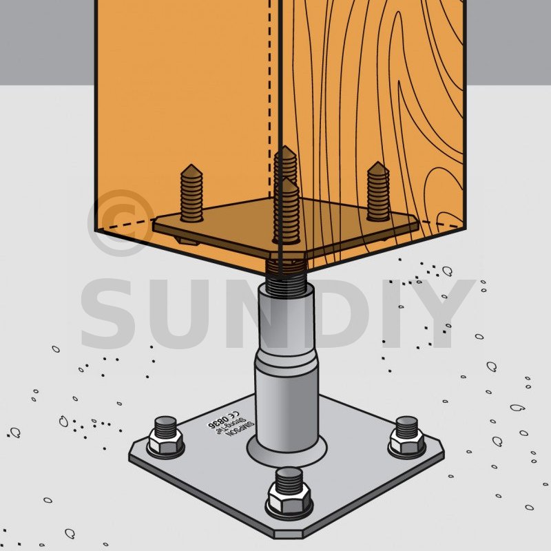 Ce pied de poteau est réglable en hauteur. Simple et rapide à installer, il peut être réglé sur le chantier.
