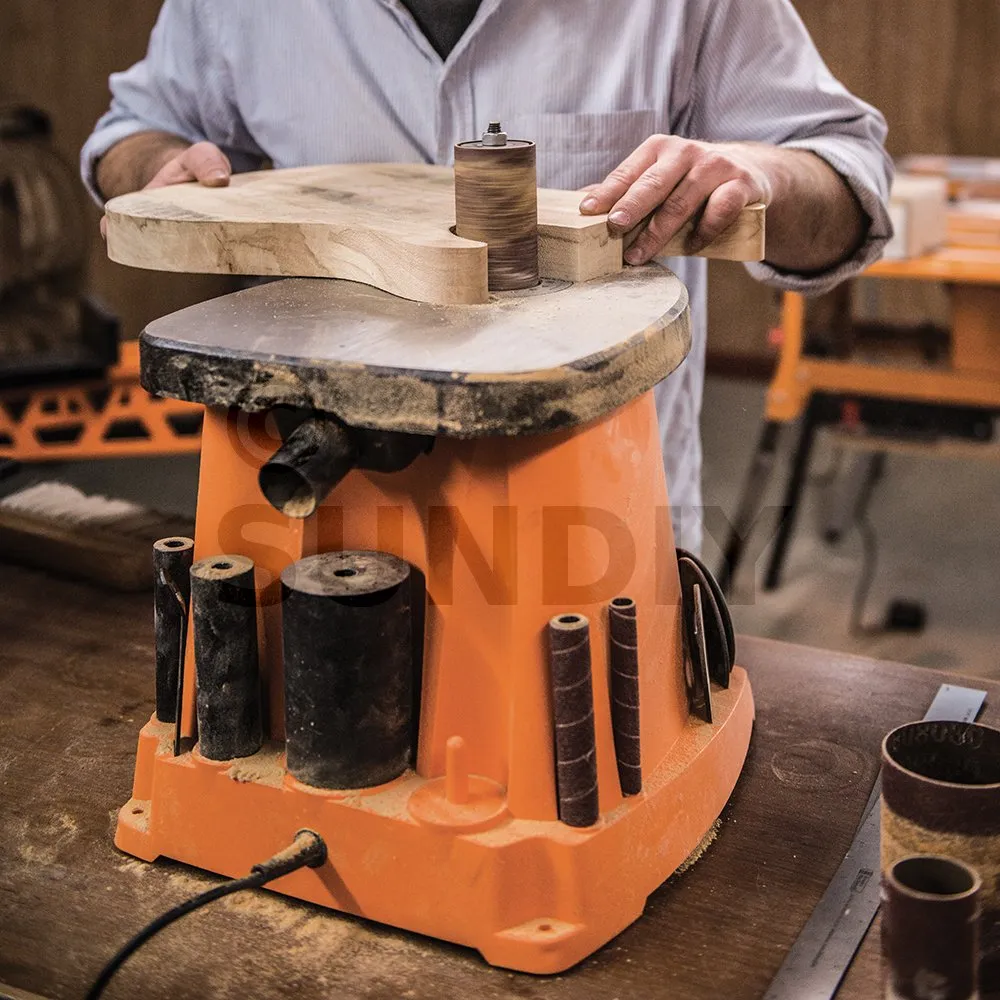 Plateau en fonte de 370 x 295 mm pour un meilleur support et plus de stabilité. Les actions de rotation et d’oscillation procurent une meilleure vitesse et efficacité , pour du travail minutieux et à finition parfaite. Comprend 6 manchons de ponçage grain 80 de 13, 19, 26, 38, 51 et 76 mm de diam. ainsi que les tambours de ponçage et inserts respectifs. Rangement des accessoires intégré. Tubulure d’extraction des poussières pour système d’aspiration.