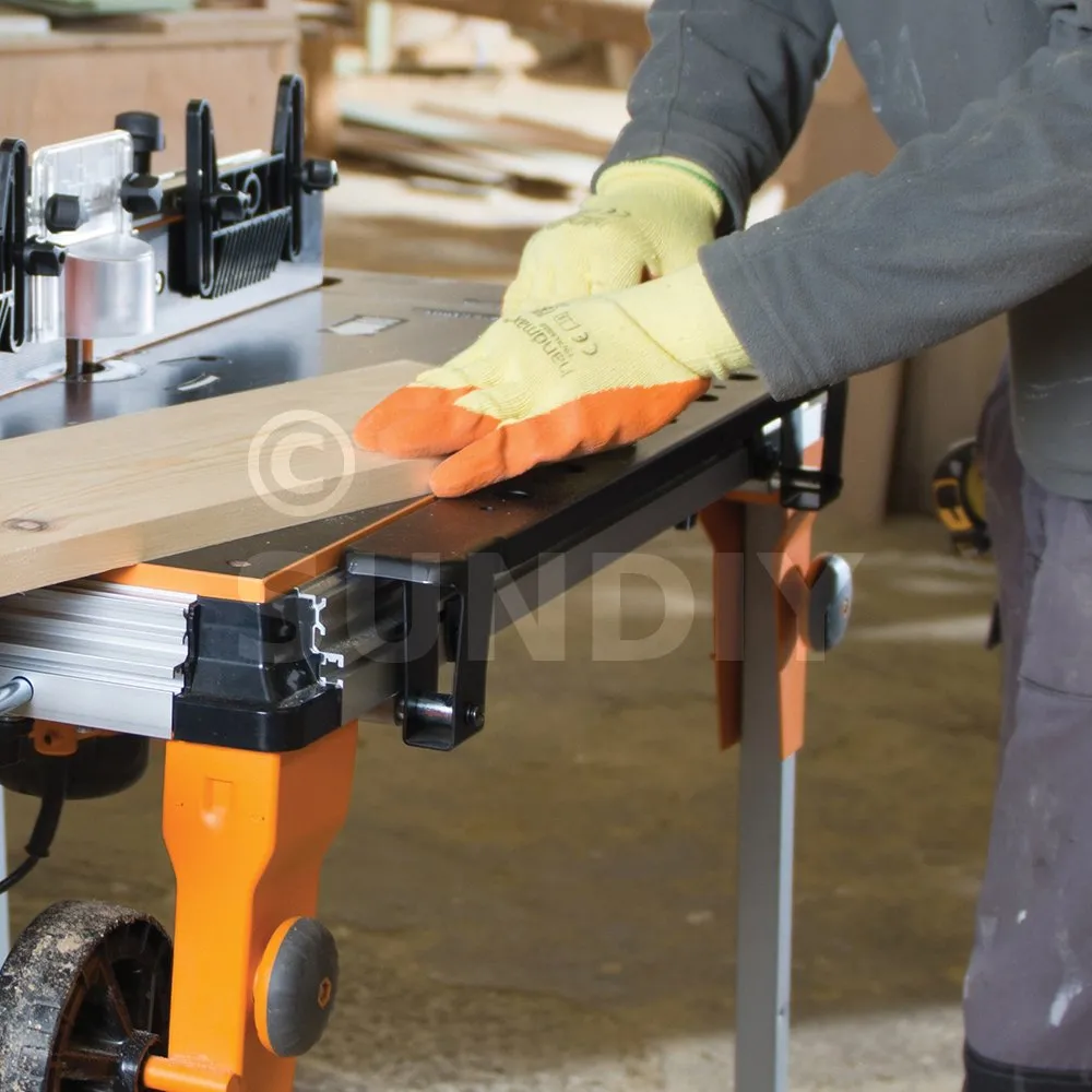 Équerre de support latéral avec tubes chromés pour prévenir la corrosion. Longueur réglable pour soutenir les pièces de plus grandes dimensions. Pratique lors de la manipulation de projets volumineux. S’allonge jusqu’à 600 mm (au maximum en partant du centre de la table).