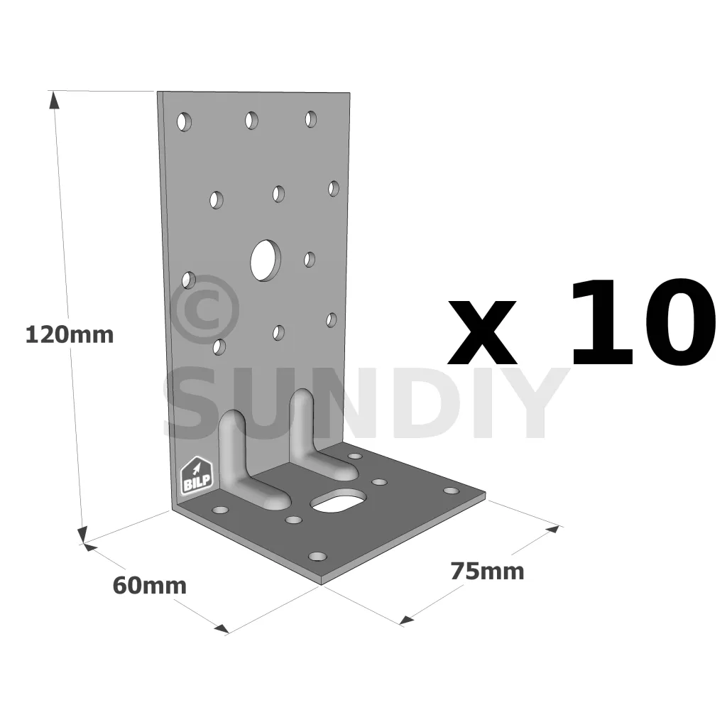 Équerres renforcées CLASSIQUES asymétriques pour le BOIS et le BETON - Réf. E6/2.5_10