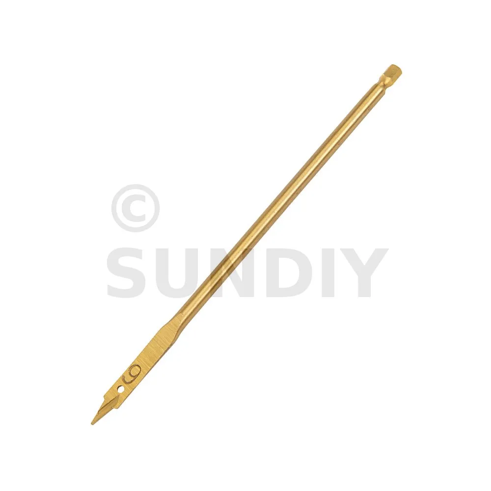 Mèche en acier carbone titanée. Tête de coupe biseautée à trois pointes permettant de réaliser une coupe nette et de réduire les projections. Renforcée en titane pour une durée de vie étendue. Queue 6 pans. Pour le perçage rapide et précis des bois tendres, semi-durs, panneaux de particules, plaques de plâtre, matières plastiques et fibres de verre.