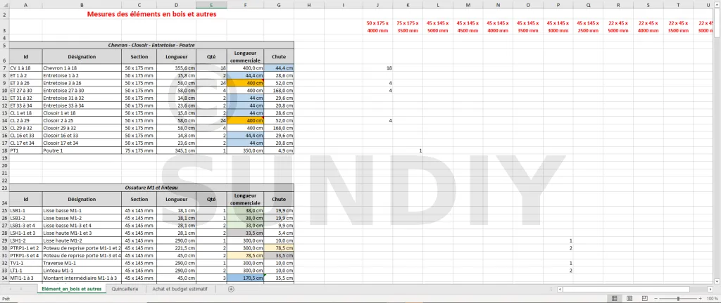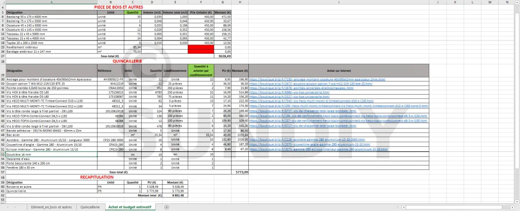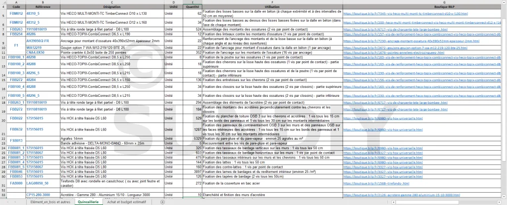 Cette liste peut être envoyée directement à votre marchand de matériaux pour réalisation d’un devis. La liste est au format EXCEL. Vous pouvez donc l’éditer, la modifier, ajouter vos informations, etc.