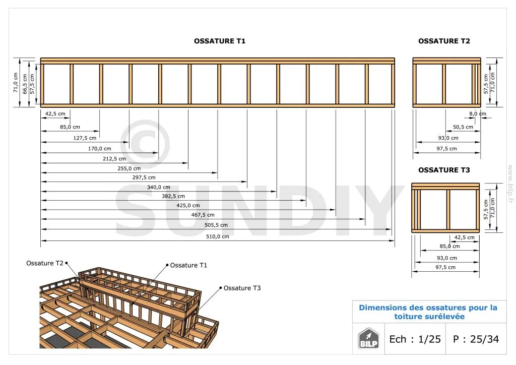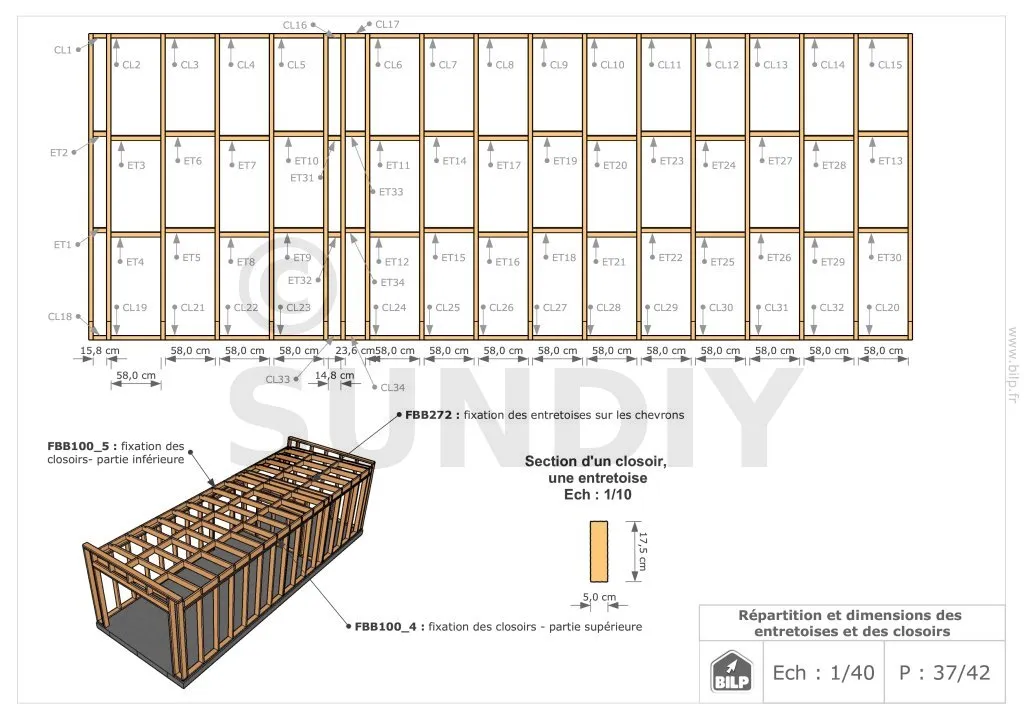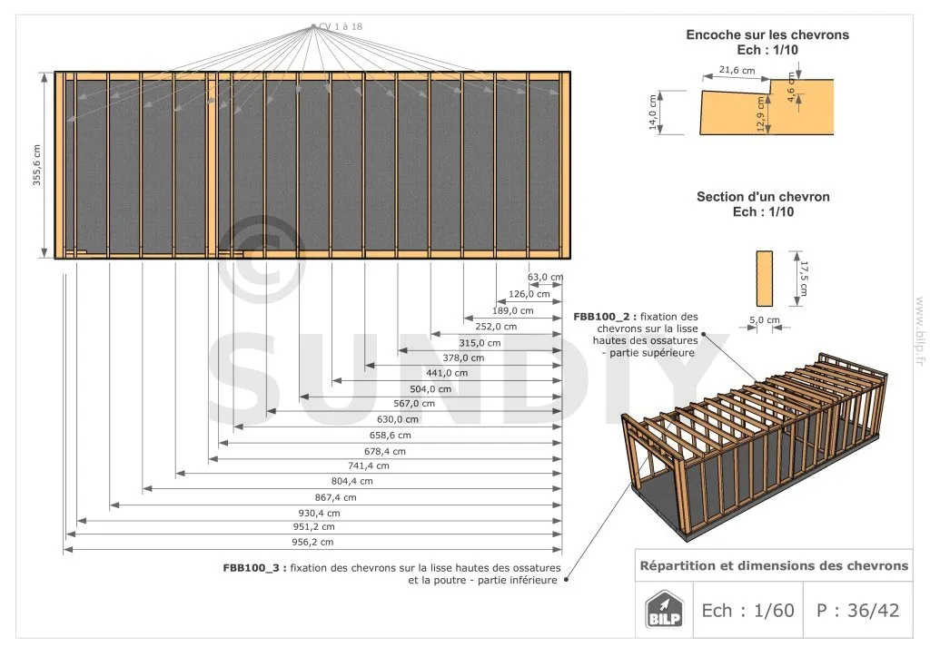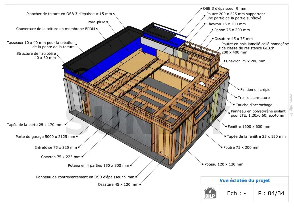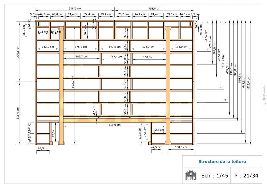 Les plans de structure à l’échelle sont faciles à lire et à comprendre. Ils vous permettrons de réaliser vous-même la structure de votre projet. Les détails de réalisation sont indiqués. Nous calculons et optimisons les dimensions et les sections de pièces de bois.