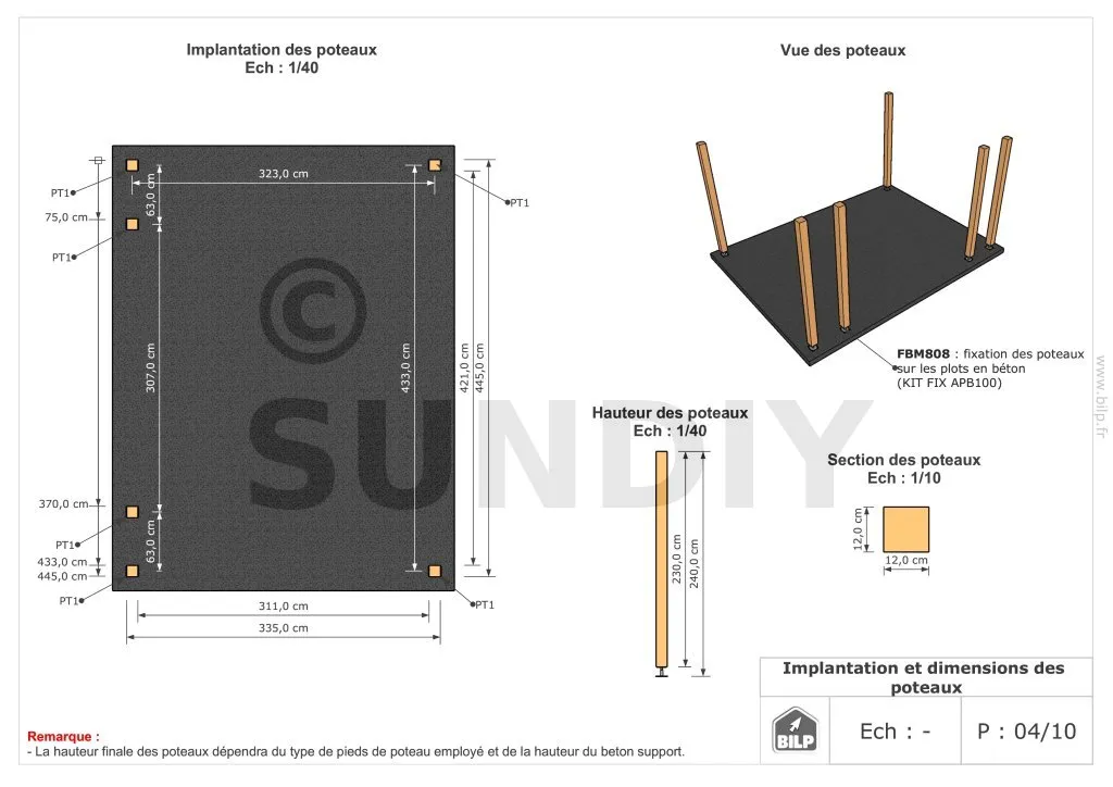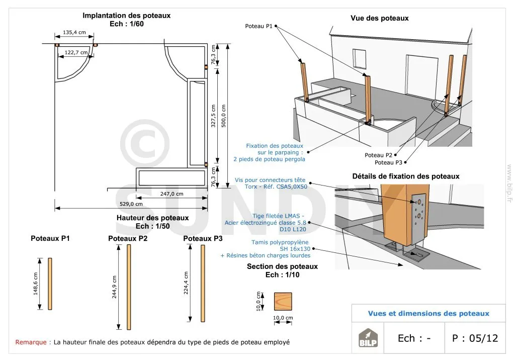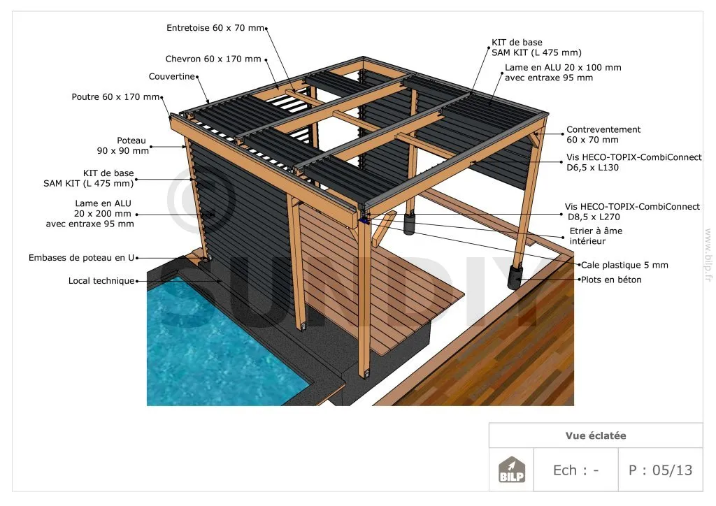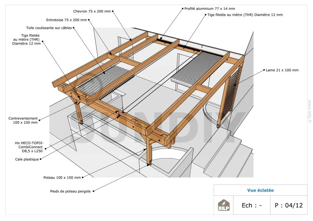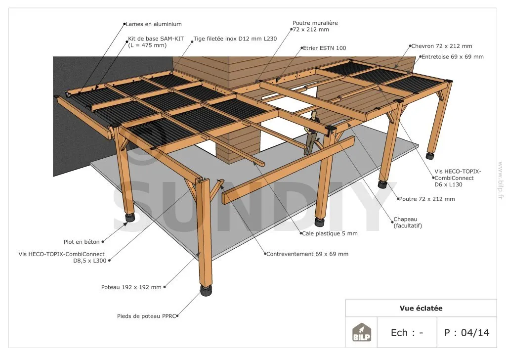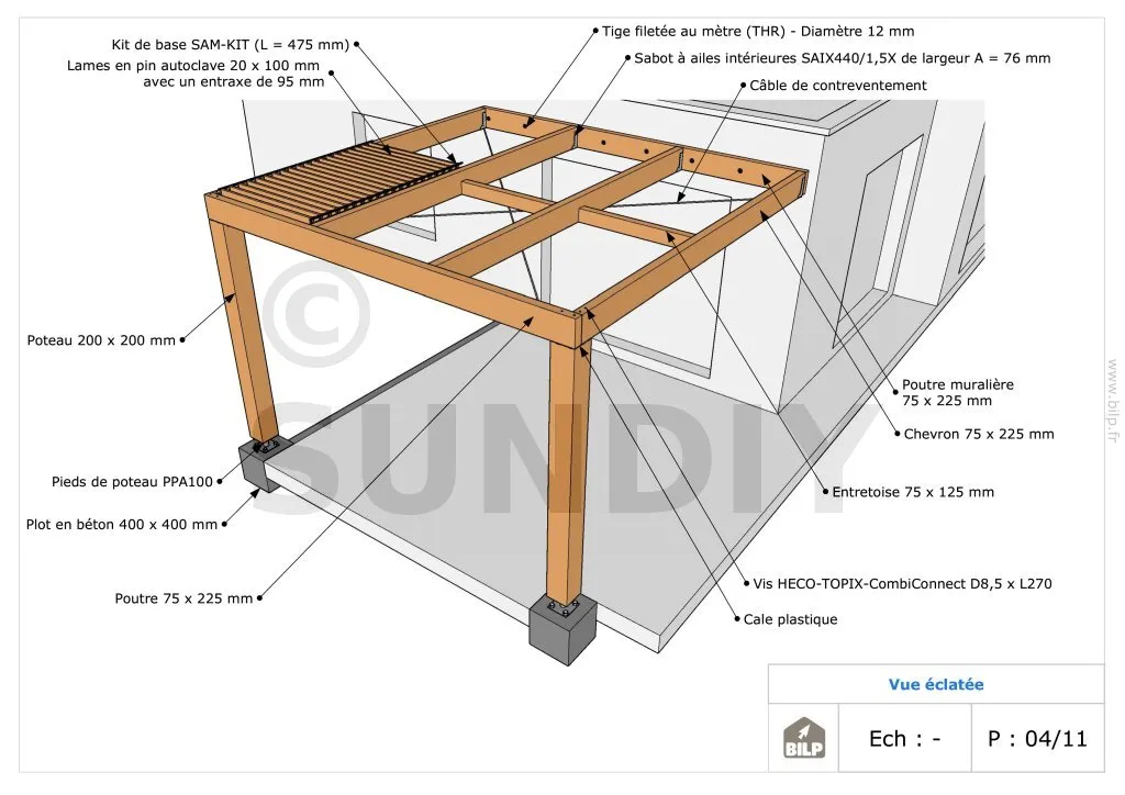 Vous aurez une vue éclatée qui vous permettra de distinguer tous les éléments constituants votre pergola.