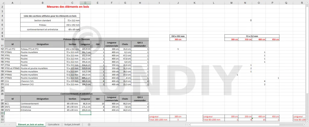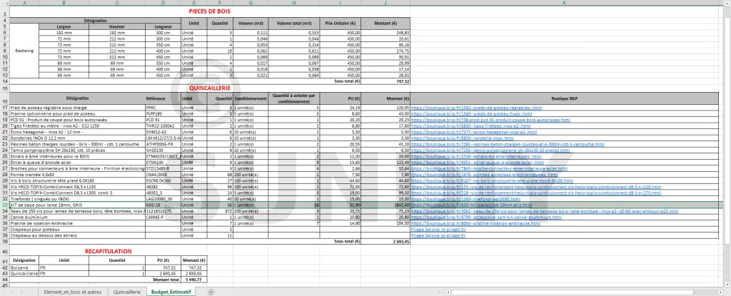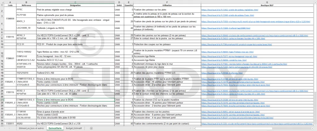 Cette liste peut être envoyée directement à votre marchand de matériaux pour réalisation d’un devis. La liste est au format EXCEL. Vous pouvez donc l’éditer, la modifier, ajouter vos informations, etc.