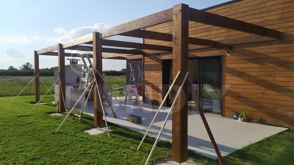 Autre point très important, votre construction doit être convenablement dimensionnée (sections et dimensions des éléments) selon la norme EUROCODE 5. Il y a de nombreux calculs à faire. Si vous surdimensionnez, vous allez dépenser de l’argent inutilement et obtenir un résultat esthétique de type "blockhaus". Si vous sous-dimensionnez, vous risquez de vous prendre la toiture sur la tête, blesser gravement quelqu’un (ou pire) et votre responsabilité serait engagée. Il faut dimensionner la structure selon les normes et les règles de l’art.
