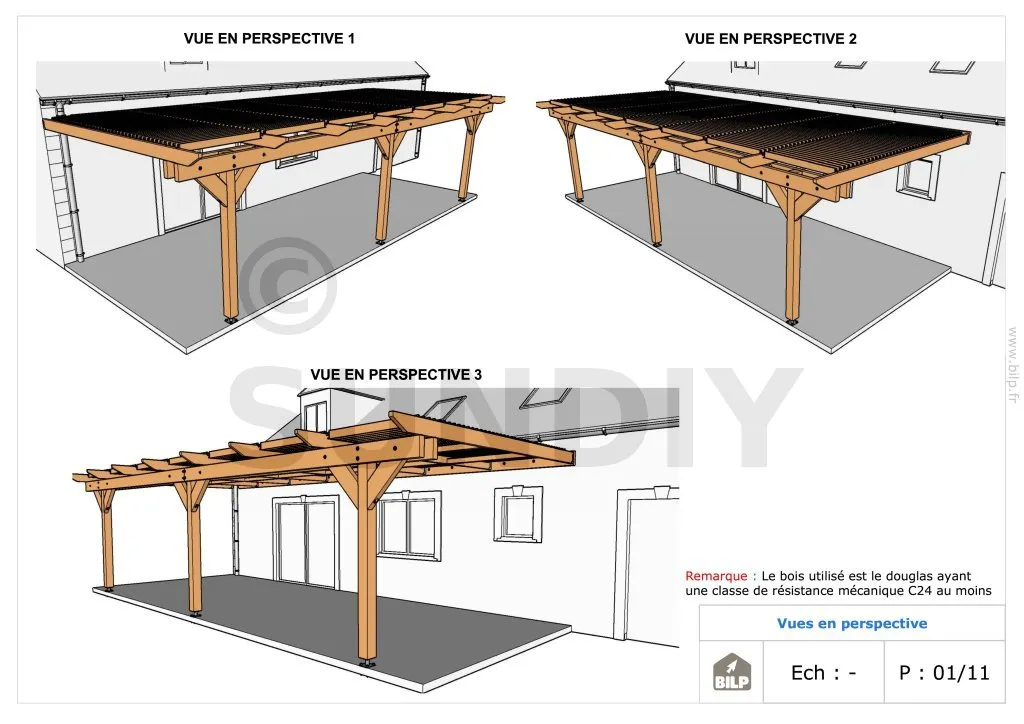 Nous réalisons tous types de Plans de Pergola selon vos mesures et vos désirs. Ce dossier TECHNIQUE vous servira à CONSTRUIRE votre pergola vous-même.