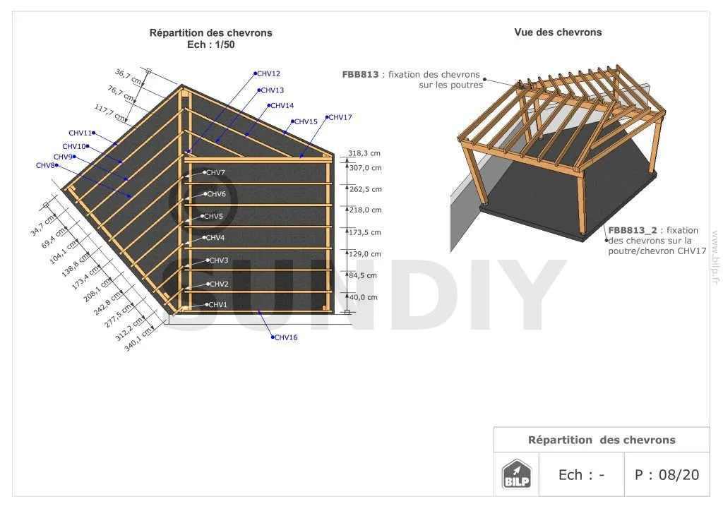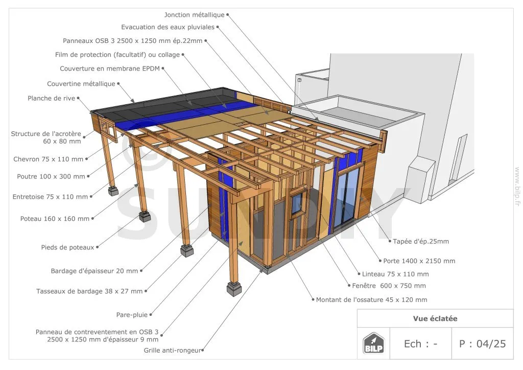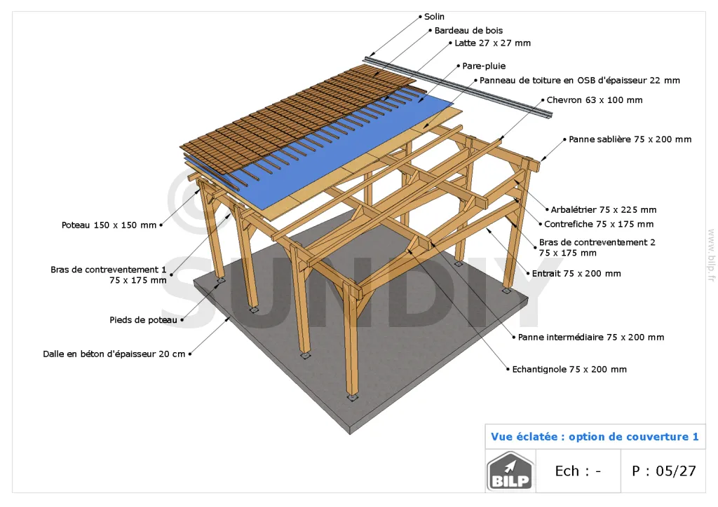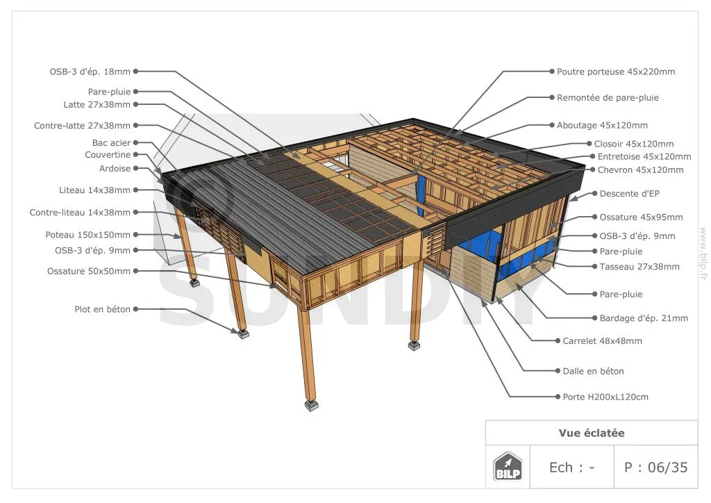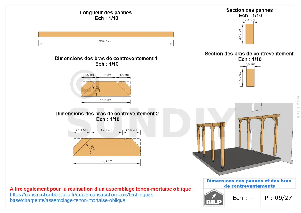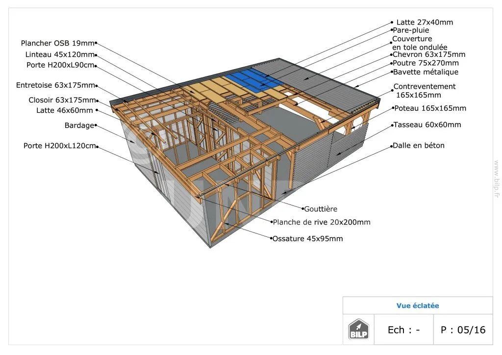 - ContenuPlans et vues ; nomenclature des matériaux ; notice de montage pas à pas ; animation vidéo ; support par un ingénieur