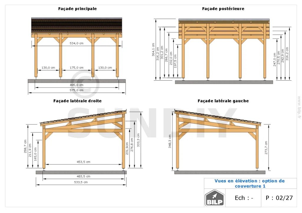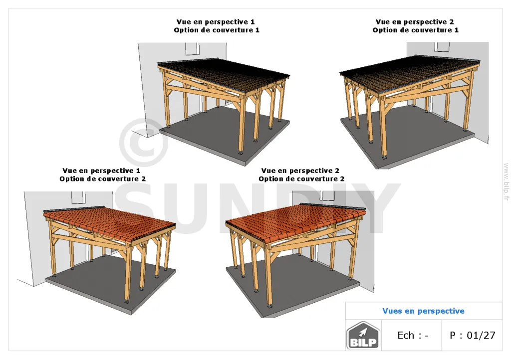 Nous réalisons tous types de Plans de Carports, Garages ou Préaux selon vos mesures et vos désirs. Ce dossier TECHNIQUE vous servira à CONSTRUIRE votre projet vous-même.