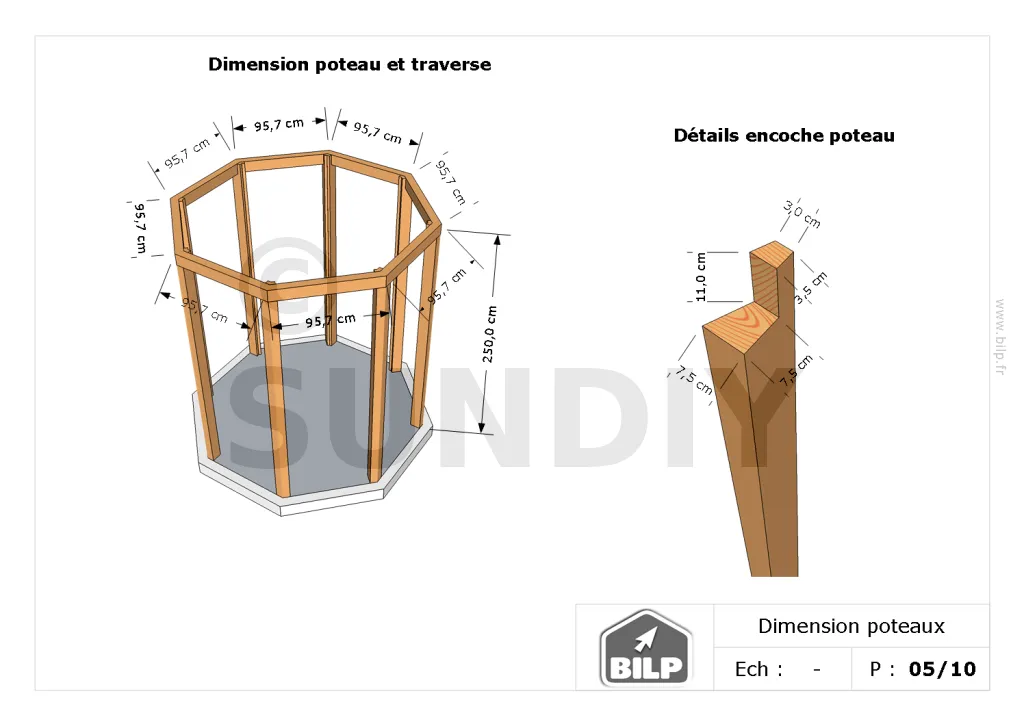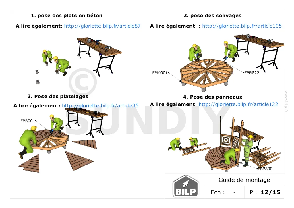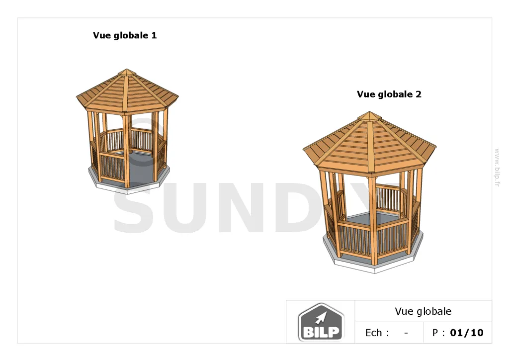 Je peux vous l’envoyer GRATUITEMENT au format PDF. Il s’agit du dossier de conception d’une belle GLORIETTE en ossature-bois. Peut-être que cela vous inspirera pour votre projet.