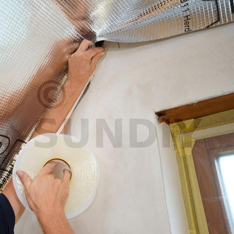 Le cordon adhésif double-face armé à base de résine acrylique avec film pelable en sous-face offre une excellente étanchéité aux raccordements des pare-vapeur DELTA® aux murs de rive et cadres d’ouvrants.