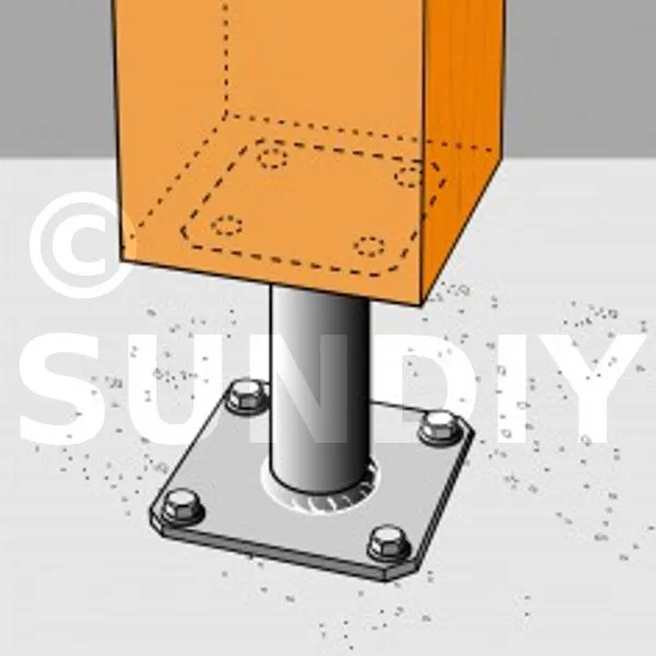 2- Fixer cette platine au poteau à l’aide de tirefonds LAG (pré-perçage nécessaire).