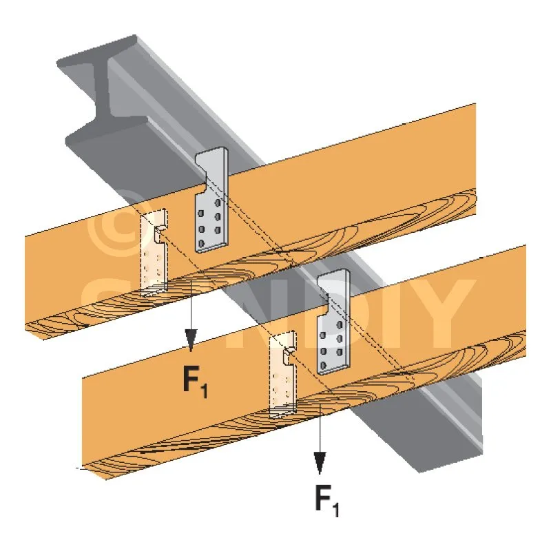 L‘ancrage IPN permet la fixation de solive bois sur poutre en I métallique de type IPN. Cette fixation est assurée par encoches.