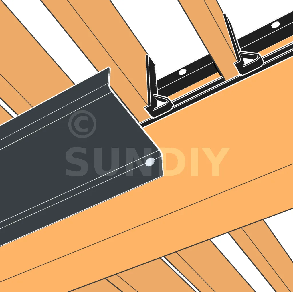 Pour une étanchéité optimale, appliquez un joint silicone neutre avant le vissage, entre les éléments du chéneau et entre le chéneau et la poutre. Cette fine couche de silicone assure une jonction parfaitement étanche et durable, empêchant toute infiltration d’eau au niveau des raccords.