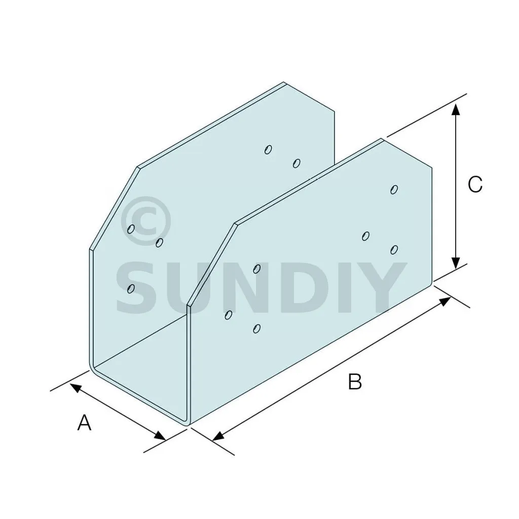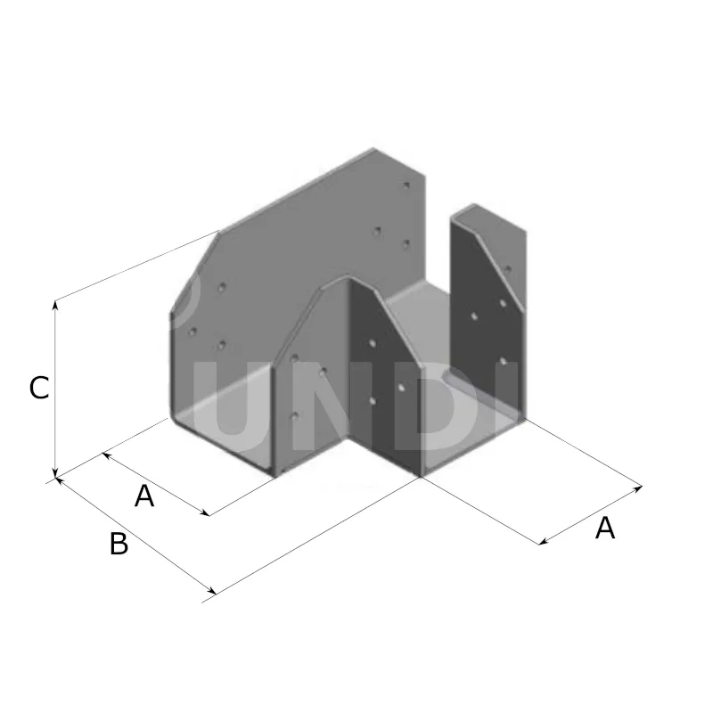 La résistance caractéristique total de la platine est donnée ci-dessus. Si deux éléments bois sont connectés avec une surface d’appui égale, alors la charge appliquée sur chaque élément ne doit pas excéder la moitié de la résistance totale. Si l’un des deux éléments connectés ne repose que sur une aile en porte à faux de la platine, alors la charge appliquée sur cet élément ne doit pas excéder 0.3 fois la résistance totale, la charge appliquée sur l’autre élément reposant sur le reste de la platine ne doit pas excéder 0.7 fois la résistance totale.