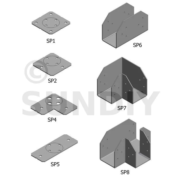 ** Pour les platines SP6, SP7 ou SP8, la traction perpendiculaire au fil du bois devra être vérifiée par l’utilisateur.