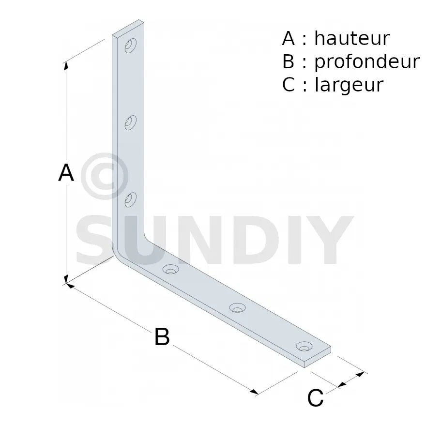- Perçages fraisés qui permettent aux vis de se fondre dans l‘épaisseur de l‘équerre.