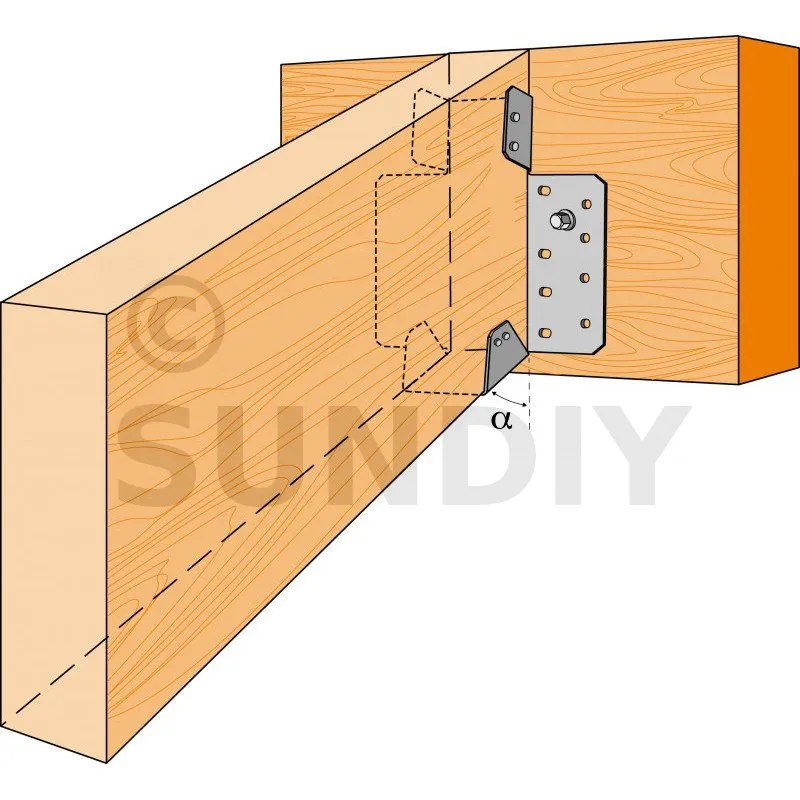 - Pannes : Utilisées pour les pannes, elles assurent une connexion robuste entre les éléments de charpente, même lorsque l’angle d’inclinaison doit être ajusté.